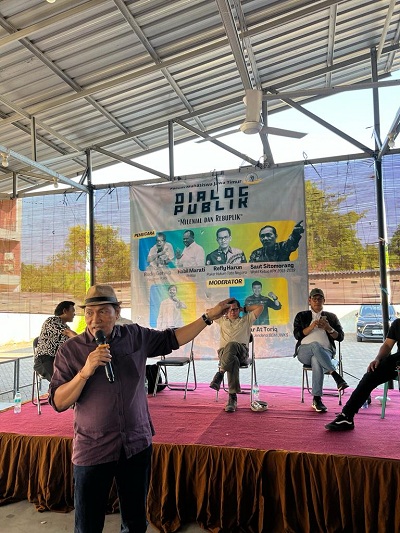 Kolaborasi ini diisi dengan kegiatan diskusi yang menghadirkan narasumber Rocky Gerung, Refly Harun, Saut Situmorang, dan Habil Marati.