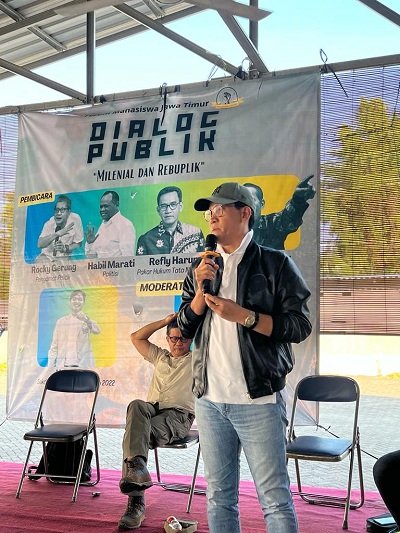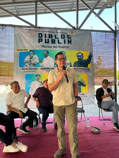 Rocky kemukakan Indonesia di era Jokowi, di forum Internasional kita sudah dianggap tidak demokratis. Hal itu nampak, setidaknya akhir-akhr ini hegemoni kekuasaan Jokowi saat melakukan intervensi MK.