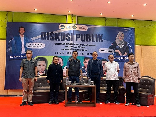 ZONASATUNEWS.COM, LAMPUNG – Kali ini giliran Universitas Lampung (UNILA) berkolaborasi bersama dengan Sekber KIB menggelar Diskusi Publik bertema: “Menatap Indonesia Maju: Tantangan Masa Depan Global dan Midlle Income Trap”, Kamis (14/9/23)