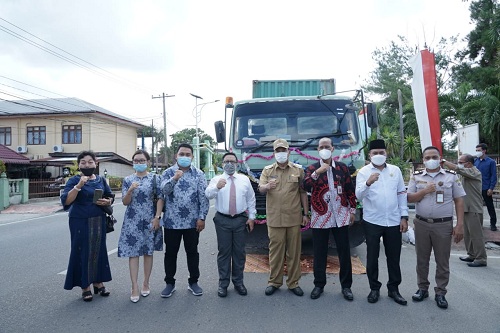 ZONASATUNEWS.COM, TEBINGTINGGI-SUMUT –Wali Kota Tebing Tinggi Ir. H. Umar Zunaidi Hasibuan, M.M. menghadiri dan melepas 1 (satu) kontainer ekspor komoditas kolang-kaling produk UMKM (Usaha Mikro Kecil dan Menengah) Kota Tebing Tinggi, tujuan negara Filipina, Senin (28/06/2021), di Halaman Balai Kota.