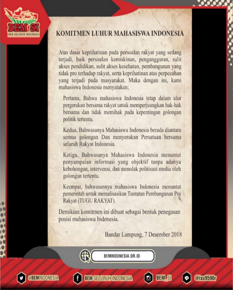Demikian komitmen ini dibuat sebagai bentuk penegasan posisi mahasiswa Indonesia.