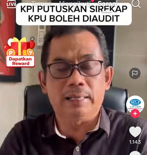 Hal itu dikatakan oleh Ahli Hukum Dr Muhammad Taufiq, SH.MH melalui akun TikTok miliknya yang telah viral di medsos.