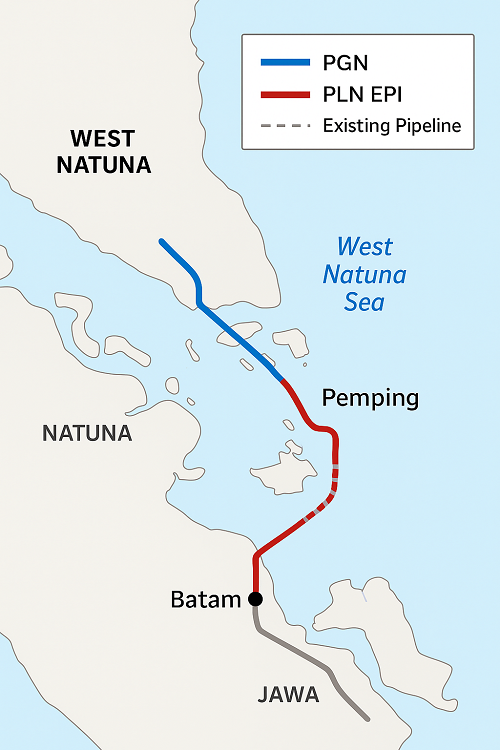 Misalnya, menekan biaya tol West Natuna–Jawa dari US$ 1,2 menjadi US$ 0,8/MMBTU dapat memangkas harga delivered signifikan.