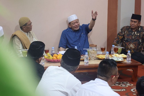 ZONASAUNEWSCOM, TASIKMALAYA – Ketua DPD RI, AA LaNyalla Mahmud Mattalitti, didoakan menjadi Presiden Republik Indonesia oleh Pimpinan Umum Pondok Pesantren Bantargedang, KH Achef Mubarok. Doa itu dipanjatkan saat LaNyalla melakukan Safari Konstitusi ke Pondok Pesantren Bantargedang, di Kampung Bantargedang, Kelurahan Kersanegara, kecamatan Cibeureum, Kota Tasikmalaya, Jawa Barat, Minggu (24/10/2021) malam.