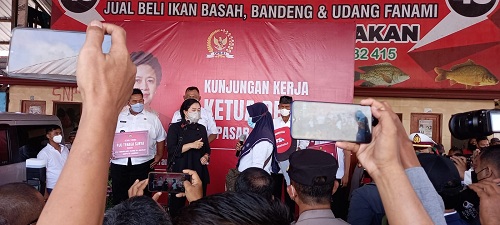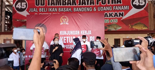Dalam kunjungan tersebut, Puan menerima keluhan para pedagang ikan dan petani tambak terkait mahalnya harga dan susahnya mendaparkan pupuk.