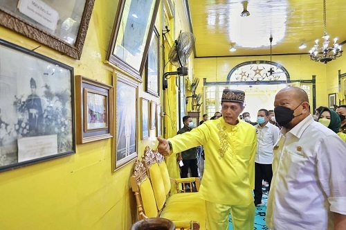 KETERANGAN FOTO :Sultan Pontianak ke-IX, Paduka Yang Mulia (PDM) Sultan Syarif Mahmud Melvin Alkadrie menjelaskan sejarah Keraton Kadriah Kesultanan Pontianak, kepada Ketua DPD RI, Minggu (13/6/2021).