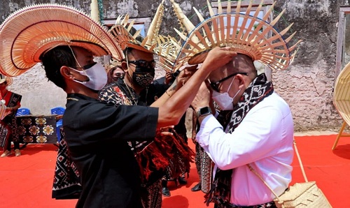Ketua DPD, AA LaNyalla Mahmud Mattalitti, mendapat gelar kehormatan Napufunu (Pelindung Besar) serta diangkat sebagai anggota kehormatan Dewan Adat, saat mengunjungi Uma Batu Kerajaan (Nusak) Termanu di Kabupaten Rote Ndao, Nusa Tenggara Timur (NTT), Sabtu (28/8/2021).