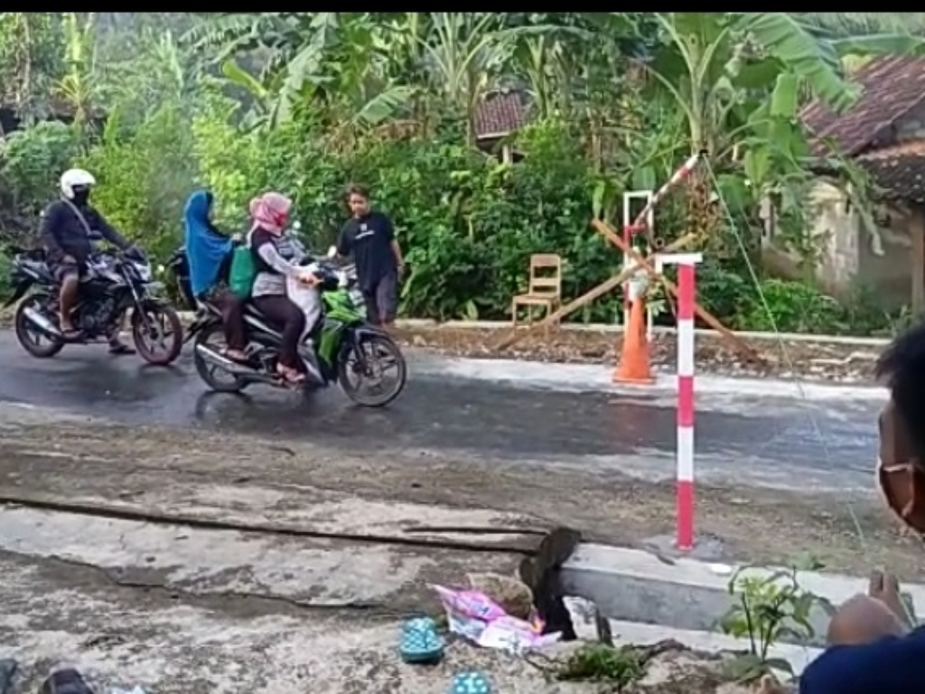 ZONASATUNEWS.COM,Yogyakarta-Kasus merebaknya Covid-19 rupanya memancing kreatifitas sebagian besar masyarakat pedesaan di wilayah Kabupaten Gunungkidul Yogyakarta. Fantastis, disetiap jalan masuk perkampungan terdapat palang pintu yang menyerupai gerbang jalan tol, pembedanya gerbang rekayasa warga gunungkidul ini sebagai upaya pencegahan merebaknya virus corona, terlihat disekitar palang pintu didapati cairan desinfektan, disemprotkan kepada setiap pengendara motor dan mobil yang keluar masuk perkampungan.