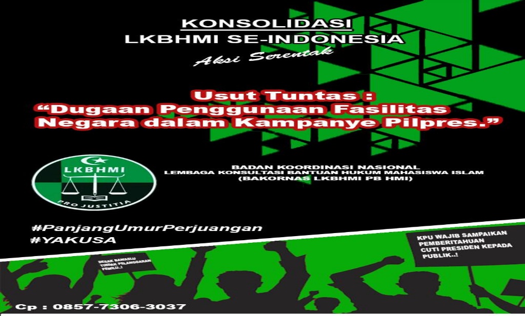 LKBHMI PB HMI akan Melakukan Aksi Secara serentak di seluruh Indonesia untuk mengusut dugaan pelanggaran pemilu Jokowi Widodo