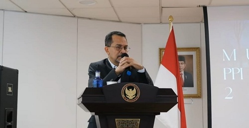 Dubes RI untuk Kerajaan Spanyol dan UNWTO, Dr Muhammad Najib memberikan sambutan pada Mubes PPI Spanyol 2023