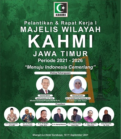 Pelantikan dan Rapat Kerja (RAKER I) Majelis Wilayah MW KAHMI Jawa Timur Masa Bakti 2021-2026 digelar di Hotel Shangri-La Hotel Surabaya, Jawa Timur pada 10 – 11 September 2021.