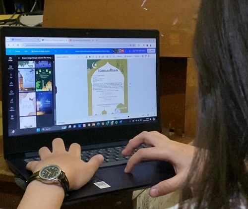 Lantas Dara mencontohkan pemakaian media Canva seperti salah satunya surat kepada wali murid dengan adanya pemberitahuan kegiatan selama bulan Ramadhan 1445H kemarin agar tidak terlihat polos, saya terapkan untuk menggunakan media canva agar lebih menarik dan lebih mudah dipahami.