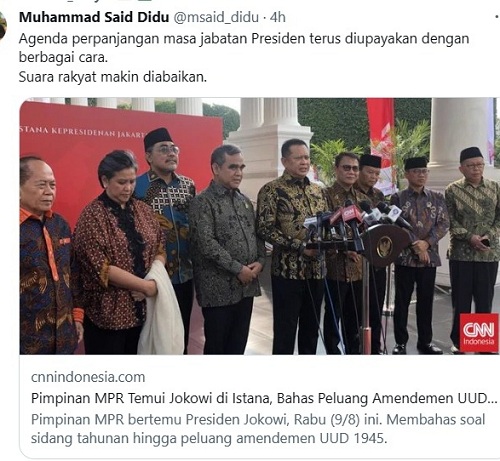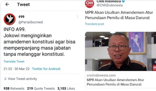 MPR tampak bernafsu mengamandemen UUD NRI 1945 (lagi) untuk menggoalkan pasal tentang darurat penundaan Pemilu.