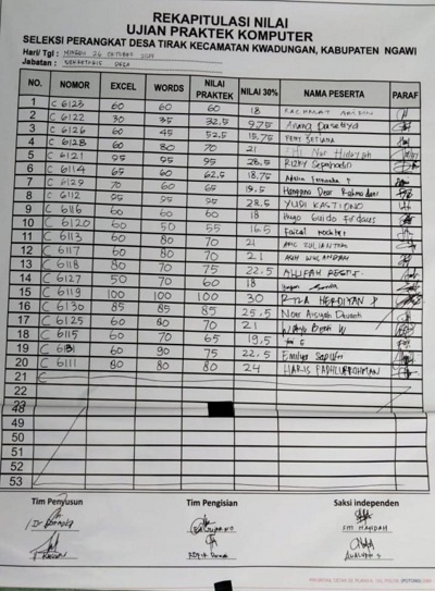 Yang lebih mencengangkan, Rizky memperoleh nilai tertinggi dalam ujian tulis — rata-rata 90 poin. Nilai fantastis itu menimbulkan kecurigaan publik, apalagi diketahui bahwa ia adalah anak kandung Kepala Desa.
