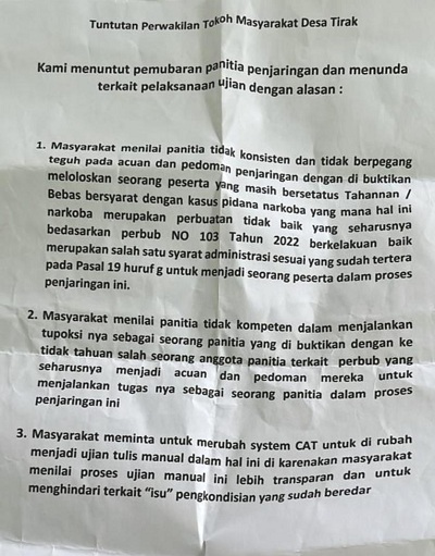 Pemicunya bukan hal sepele — Rizky Sepahadin, putra Kepala Desa Tirak, Suprapto, dilaporkan berstatus bebas bersyarat dalam kasus narkoba hingga Desember 2026, namun tetap diloloskan sebagai calon perangkat desa dan bahkan mendapat nilai tertinggi, rata-rata 90, untuk posisi Sekretaris Desa (Sekdes).