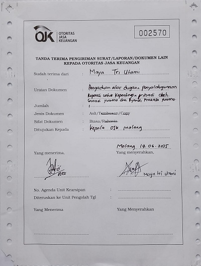 Maya berharap dukungan dari media dan publik agar laporan ini segera ditindaklanjuti oleh OJK secara serius dan menyeluruh.