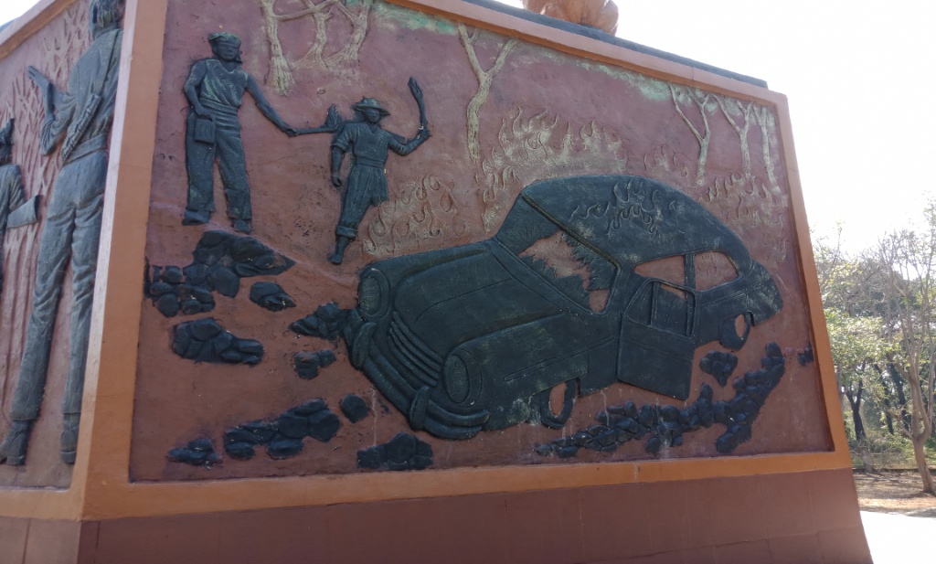Disebelah utara dipinggir jalan menuju Dusun Pelanggarem didirikan tugu pembakaran mobil. Jadi menurut penulis, pelucutan pakaian Gubernur Soeryo, Kombes M Doeryat, dan Kompol TK I Soeroko, terjadi di tugu ini. Lokasi pembakaran mobil berjarak 200 meter dari jalan raya.