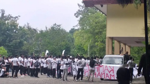 Somasi tidak dijawab, justru muncul demo mahasiswa FKOR didepan Gedung Rektorat UNS, Kamis (2/2/2023).
