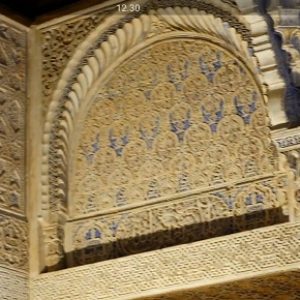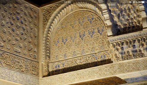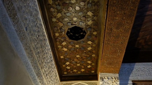 Tiap sudut ruang ini dipenuhi dengan tulisan kaligrafi indah. Kalu diterjemahkan “Tidak ada yang menang kecuali Allah”. Karena itu sejak awal sudah dirasakan sekali, betapa ringkihnya kekuasaan Al Ahmar ini.