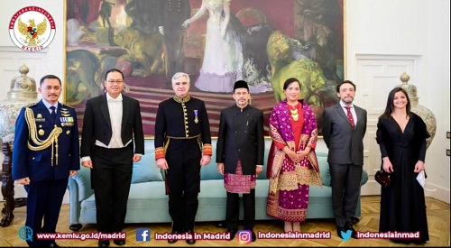 Dubes Dr MUhammad Najib bersama Raja panyol Felipe VI di Palacio Real, Madrid (1/13/2022). (Dok Kedubes RI Madrid)