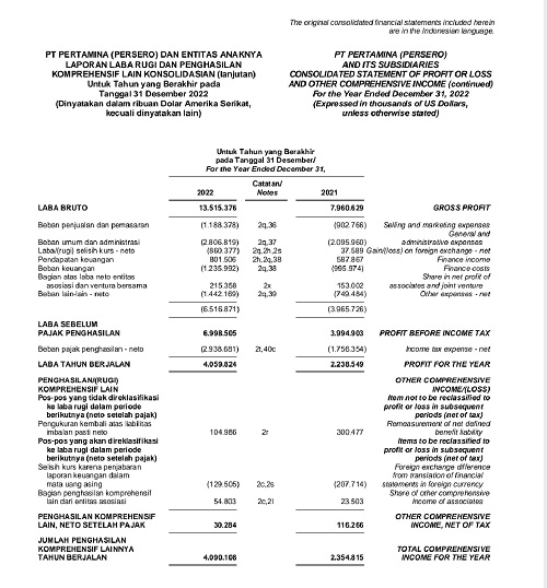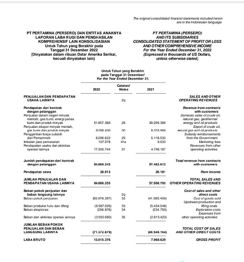 Pertamina Tahun 2022 melaporkan dalam laporan keuangan resmi bahwa laba perusahaan migas terbesar di tanah air ini naik hampir 75% dibandingkan tahun sebelumnya. Namun belum banyak yang tau dari mana sumber keuntungan itu berasal. Ternyata bukan dari bisnis BBM dalam tahun 2022 tersebut. Tapi dari sumbangan pendapatan lain lain.