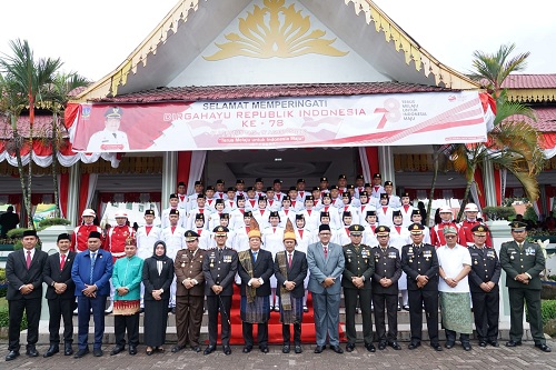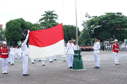 Pj. Wali Kota dalam kesempatan tersebut mengatakan merah putih bukan hanya sekedar sebuah bendera tapi simbol kebangsaan kita, simbol harga diri sebuah bangsa dan pencapaian tujuan cita-cita pembangunan dan kemerdekaan.