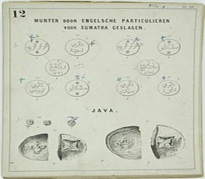 Di Sumatra, koin pertama kali dicetak pada abad ke-11. Koin bunga cendana serupa seperti yang ada di Jawa ditemukan di Sumatra, tetapi lebih dari itu terbuat dari emas, elektrum, dan paduan perak. Beberapa situs abad ke-11 di Sumatra termasuk Barus, Bengkulu, dan Muara Jambi berlimpah dalam koin emas, sedangkan perak jarang. Koin serupa juga ditemukan di Thailand Selatan. Contoh-contoh paduan perak Sumatra sangat baik dibuat dibandingkan dengan koin perak Jawa.