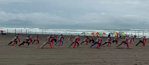 Antusiasme anak-anak muda dari Rumah Budaya Kebun Kebangsaan sedang menari di Pantai Parangtritis Yogyakarta saat Wisata Budaya (11-12 Nopember 2021)