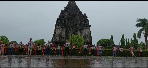 Anak-anak muda dari Rumah Budaya Kebun Kebangsaan sedang menari di Candi Kalasan Yogyakarta saat Wisata Budaya (11-12 Nopember 2021)