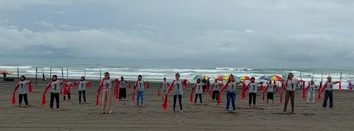 Antusiasme anak-anak muda dari Rumah Budaya Kebun Kebangsaan sedang menari di Pantai Parangtritis Yogyakarta saat Wisata Budaya (11-12 Nopember 2021)