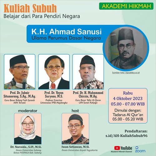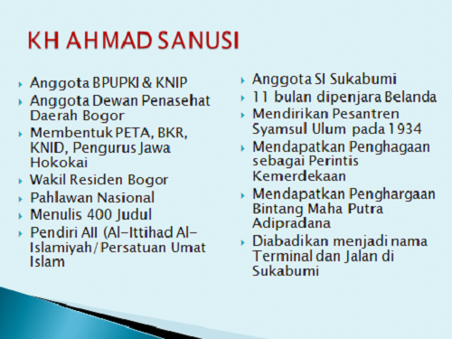 ZONASATUNEWS.COM, JAKARTA – KH Ahmad Sanusi ajengan (Kyai/Ulama) asal Sukabumi. Anggota BPUPKI dan KNIP.