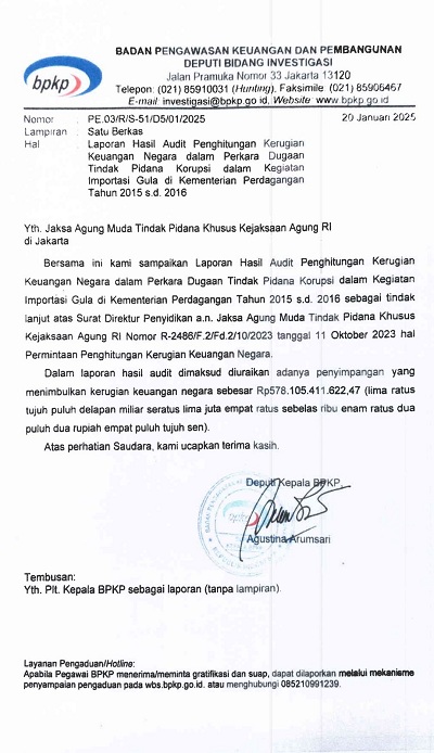 Tim audit BPKP diduga telah melakukan rekayasa dalam menetapkan kerugian keuangan negara dalam kasus impor gula Tom Lembong, dengan menciptakan kerugian keuangan negara “fiktif”.