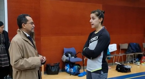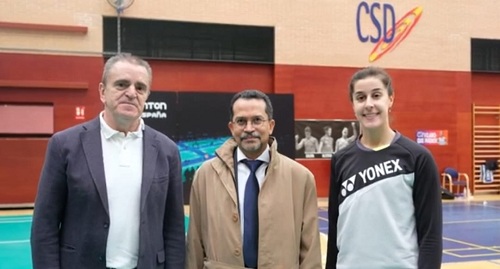 ZONASATUNEWS.COM, MADRID – Dubes RI untuk Spanyol dan UNWTO, Dr Muhammad Najib mengunjungi Gedung Olah Raga (GOR) Bulutangkis di Madrid. Kedatangannya untuk bertemu dengan seorang pemain hebat Spanyol, yang pernah menjadi juara dunia bulutangkis beberapa kali, dan juga juara Olimpiade. Carolina Marin, namanya, dia dijuluki sebagai Ratu Bulutangkis Spanyol.