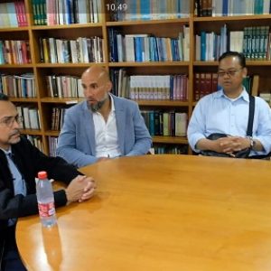 Di perpustakaan masjid Granada, Umar (disebelah Dubes Najib) menjelaskan sejarah berdirinya masjid Granada kepaa rombongan Komisi VIII DPR RI