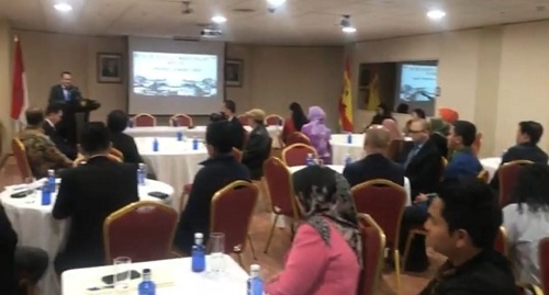 Audiens: anggota MPR RI, Atase Perdagangan, Atase Pertahanan, ITPC, wakil masyarakat dan homestaf KBRI Madrid, sedang mendengarkan sambutan Dubes Muhammad Najib