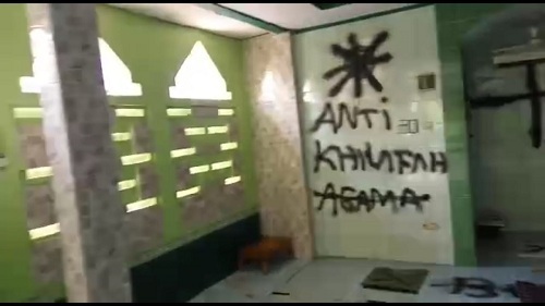 ZONASATUNEWS.COM, TANGERANG–Hari ini Selasa (29/9/2020) sore sekitar pukul 15.30 Wib telah terjadi pencoretan tembok dan lantai, penyobekan dan coret-coret Kitab Suci Alqur’an, pengguntingan sajadah di Musollah Darussalam Rt 5/8 Perum Villa Tangerang Elok Kelurahan Kutajaya Kec Pasar Kemis Kab Tangerang.
