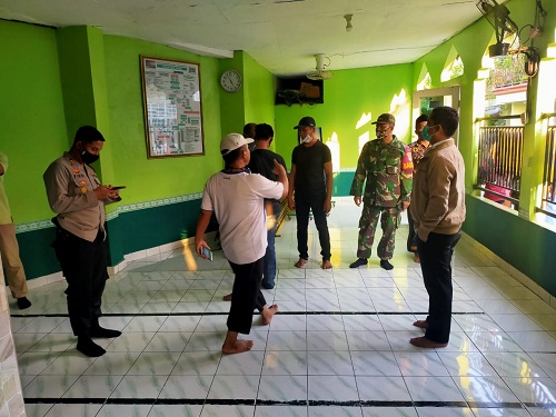 Pukul 16.30 Kapolsek tiba dilokasi melakukan olah TKP dan mengamankan barang bukti. Selanjutnya memerintahkan warga untuk membersihkan coretan pilok di tembok, lantai dan kaligrafi.