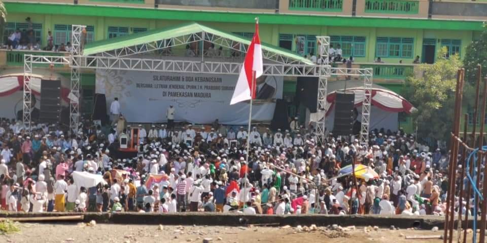 Zonasatu News –Inilah foto-foto sambutan Masyarakat Pamekasan terhadap Prabowo Subianto :