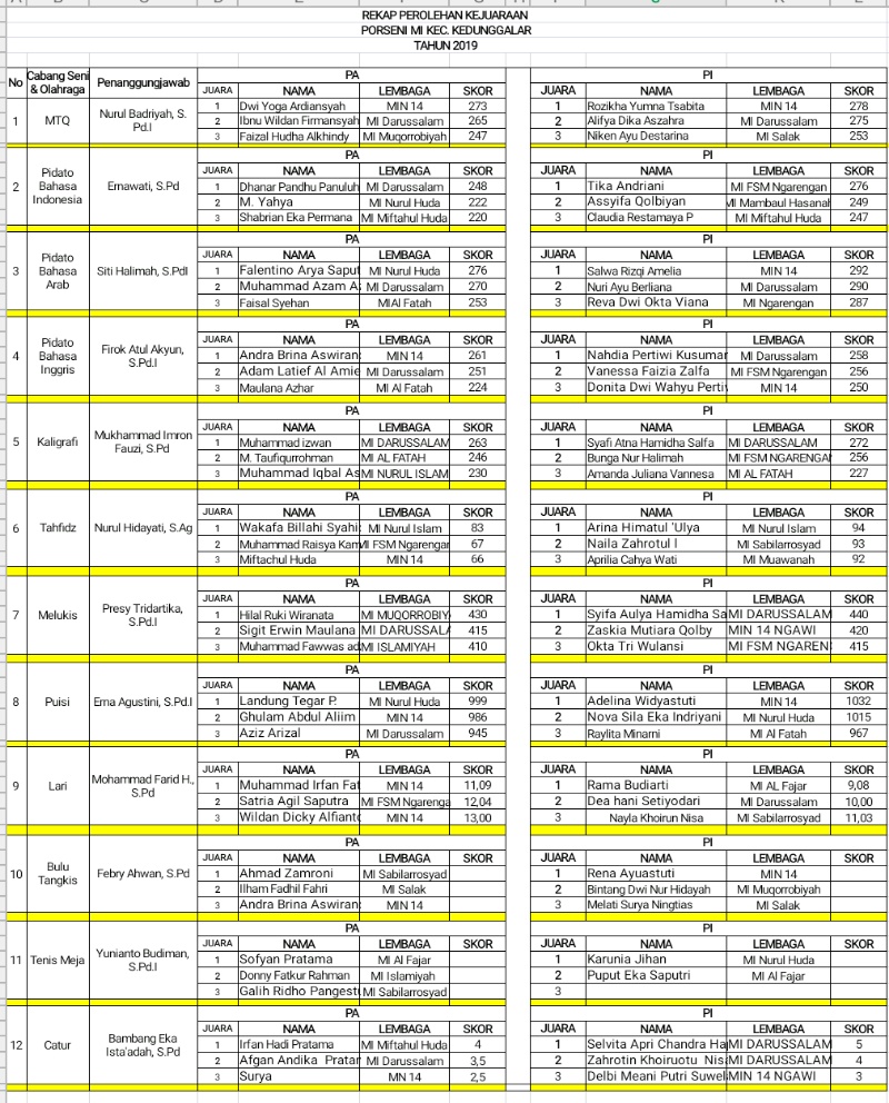 Lomba ini diadakan oleh Kementerian Agama Kabupaten Ngawi. Para juara akan mewakili kecamatan Kedunggalar pada lomba tingkat Kabupaten mendatang.