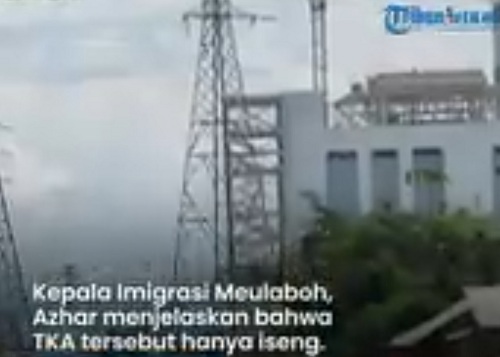 Tangkapan layar video: TKA China memakai seram mirip militer bekerja di Proyek PLTU Nagan Raya Aceh (20/4/2022).