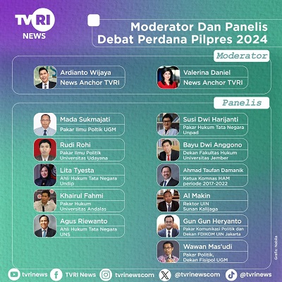 Debat II, Jumat, 22 Desember 2023 Capres dan Cawapres bertema Pertahanan, Keamanan, Geo Politik, dan Hubungan Internasional.