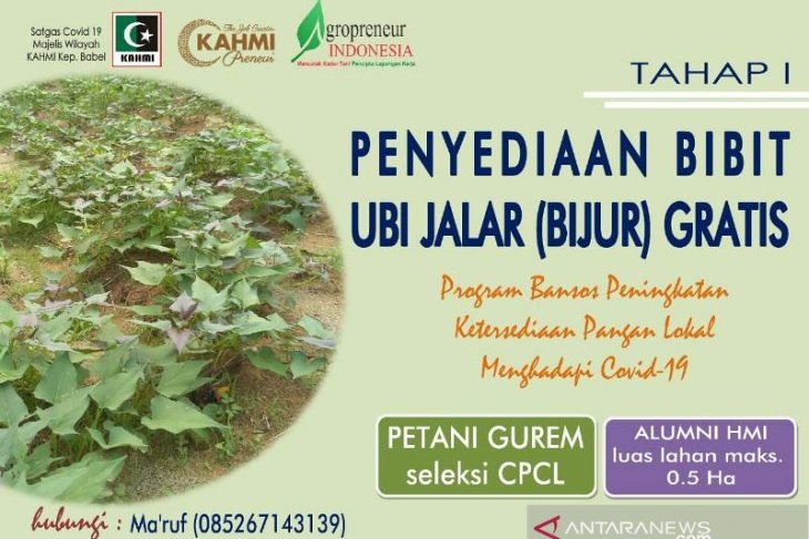 Melalui kolaborasi dengan Satgas Covid 19 Majelis Wilayah KAHMI, KAHMIPreneur Bangka Belitung dan Agropreneur Indonesia, KAHMI memberikan bantuan ubi jalar bagi petani gurem di Babel.