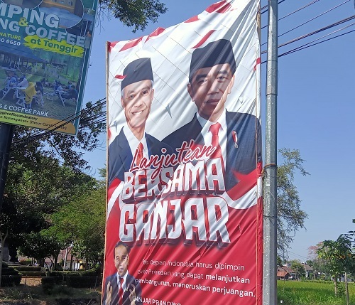 Baliho Presiden Jokowi bersama Ganjar Pranowo terpasang di perempatan Papahan Tasikmadu. (Foto: Iwan).