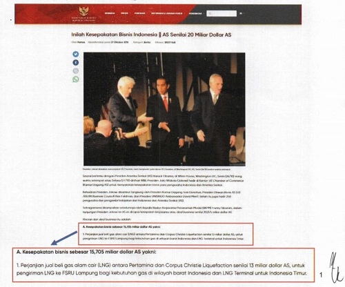 Pentersangkaan dan penahanan ini sangat mengejutkan saya, karena kontrak yang ditandatangani pada 2013 dan 2014 oleh Pertamina sudah dibatalkan atau diganti dengan kontrak baru pada era Bapak Presiden Jokowi, yakni pada tanggal 20 Maret tahun 2015. Kontrak baru pembelian LNG dari CCL dengan volume dan harga yang berbeda tersebut diresmikan di Amerika Serikat tanggal 27 Oktober 2015 pada saat Kesepakatan Bisnis para Pengusaha lndonesia dan Amerika Serikat (cuplikan berita terlampir). Pada saat itu saya sudah tidak menjabat lagi sebagai Direktur Utama Pertamina, karena terhitung mulai tanggal 1 Oktober 2014 saya sudah resmi mengundurkan diri.