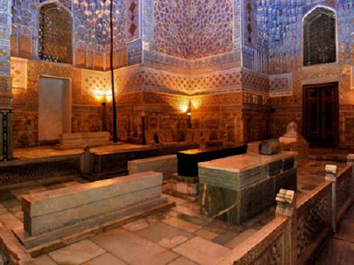 Kami kemudian kembali ke mobil dan bergerak ke bangunan yang menyerupai masjid kecil. Ternyata di bawah kubahnya bersemayam makam Amir Timur dan keluarganya yang sampai saat ini dianggap sebagai pahlawan besar yang mengantarkan bangsa Uzbek mencapai kejayaannya di masa lalu.