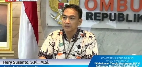 “Itu hasil pembahasan kajian ORI bersama ahli petir dari ITB di 25 Oktober 2021, yang pernah kami undang ke ORI untuk melengkapi laporan investigasi inisiatif ORI atas kasus kebakaran kilang minyak Balongan Indramayu Jawa Barat yang terjadi pada akhir Maret 2021 lalu,” jelas Hery Susanto.