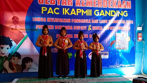 Sementara ketua Panitia, Sahabat Kurdiyanto, menyampaikan, mengucapkan terimakasih kepada Bapak Camat, Ibu Ketua PKK, Dewan Juri, segenap penitia dan pengurus IKAPMII Ganding serta seluruh peserta telah ikut mensukseskan acara lomba Pancasila dan Mars Indonesia Raya.