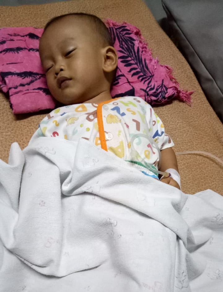 Anak tersebut mengalami kebocoran jantung dan penyempitan pembuluh darah. Sudah 3 kali bolak-balik ke Rumah Sakit Pusat Jantung Harapan Kita di Jakarta.