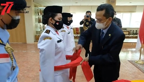 Dubes Muhammad Najib mengukuhkan anggota Paskibraka yang terpilih bertugas pada upacara HUT Kemerdekaan RI ke-77 tanggal 17 Agustus 2022
