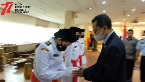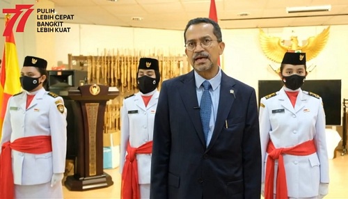 Dubes Muhammad Najib memimpin upacara Pengukuhan Paskibraka yang akan bertugas pada upacara HUT Kemerdekaan RI ke-77 tanggal 17 Agustus 2022.
